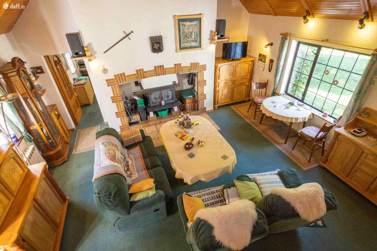 We are delighted to offer to the market this wonderful bungalow style residence in the scenic area of Caragh Lake. This sanctuary was originally built in 1983 on circa 0.98 acres and is more specifically identified in Folios 12906F (Plan 108) & 42452F (Plan 177). The property has the benefit of beautiful landscaped gardens with the possibility of further site potential. Invitingly warm and cosy home here in a well looked after small residential area. The house is in very good structural and decorative order. Heating is from gas fired radiators and is serviced by mains water, electricity and septic tank. Much care has been taken by the current owner in terms of presentation. The accommodation therein briefly comprises of: Ground Floor: Entrance Porch 2.66m X 2.05m Tiled floor Living Room 5.71m X 5.34m Carpeted, High ceilings, Feature fireplace with solid fuel stove Dining area 3.07m X 2.75m Carpeted Kitchen 3.83m X 2.17m Fully fitted kitchen Bathroom 2.34m X 2.15m Electric shower, Fully tiled WC 1.7m X 1.2m Tiled floor Hallway 11.69m X 0.81m Carpeted Bedroom 5.05m X 3.23m Carpeted Ensuite 3.25m X 2.95m Bath, tiled floor, half tiled walls, rear door Dressing area/study 3.39m X 2.88 Carpeted Sitting area/Bedroom 6.13m X 3.62m Carpeted First Floor: Landing 1.9m X 1.37m Timber floor Hallway 2.5m X 1.13m Timber floor, built in wardrobes either side Bedroom 4.56m X 3.92m Carpeted Dressing area/walk in wardrobe 2.43m X 1.72m Timber floor Ensuite 2.03m X 1.96m Jacuzzi bath Detached garage 5.84m X 3.4m double doors Carport 5.77m X 4.49m brick driveway Workshops 5.59m X 3.84m Plus 3.84m X 1.91 with roller doors and side door Metal shed 5.48m X 3.35m concrete base Glounaguillagh National School 0.5 km Caragh Lake 1.5 km Killorglin Town 6 km Glenbeigh Village 8.5 km EXCELLENT OPPORTUNITY TO ACQUIRE A BEAUTIFUL HOME NESTLED IN A PRIVATE COUNTRYSIDE SETTING PRESENTED TO A HIGH STANDARD IMPECCABLY MAINTAINED THROUGHOUT BY CURRENT OWNER GAS FIRED CENTRAL HEATING CARPORT 2 ENTRANCES BRICK FEATURE DRIVEWAY POPULAR RESIDENTIAL AREA CLOSE TO NATIONAL SCHOOL LARGE GARDENS WITH PATHWAYS AND SITE POTENTIAL CYCLING, GOLFING, HILLWALKING, LAKE AND BEACH ACTIVITIES CLOSE BY VIBRANT TOWN OF KILLORGLIN LESS THAN 10 MINUTE DRIVE AWAY VIEWING STRONGLY RECOMMENDED Viewing strictly by appointment so call Adrian on 0871303206.