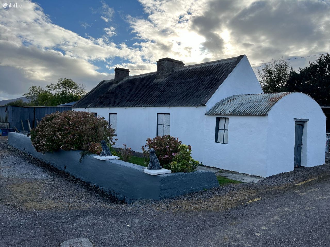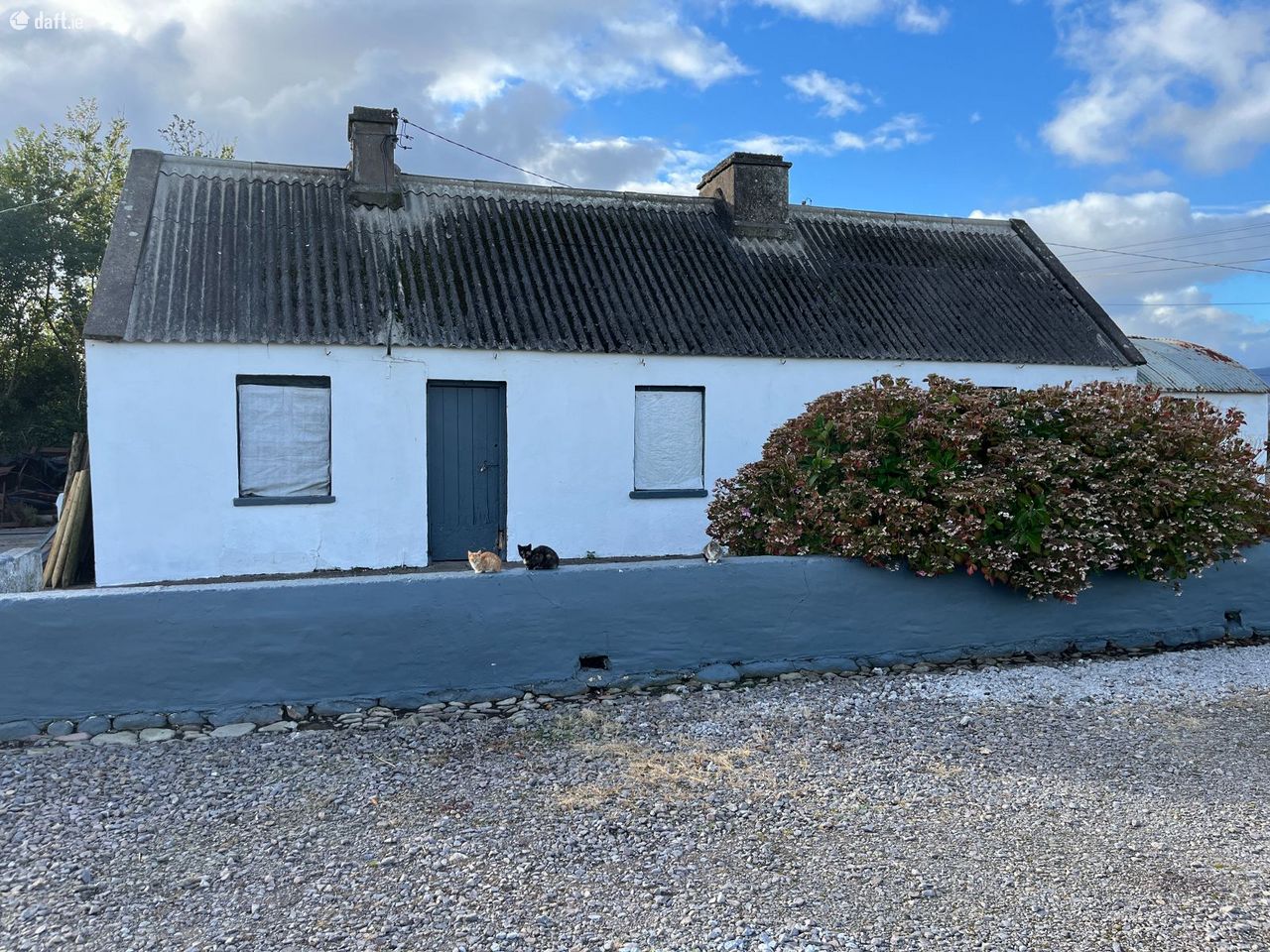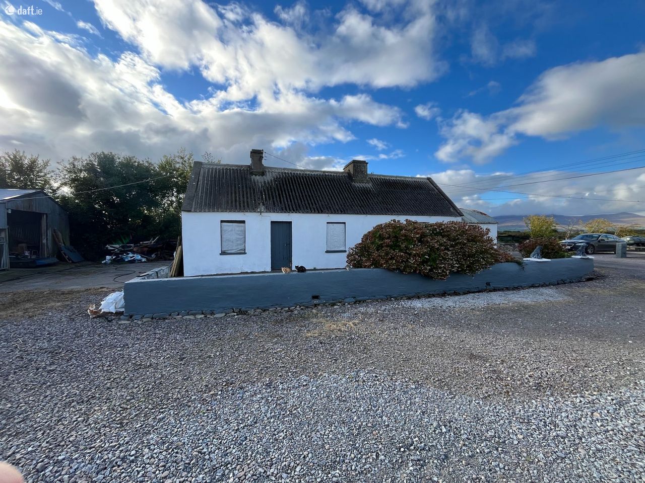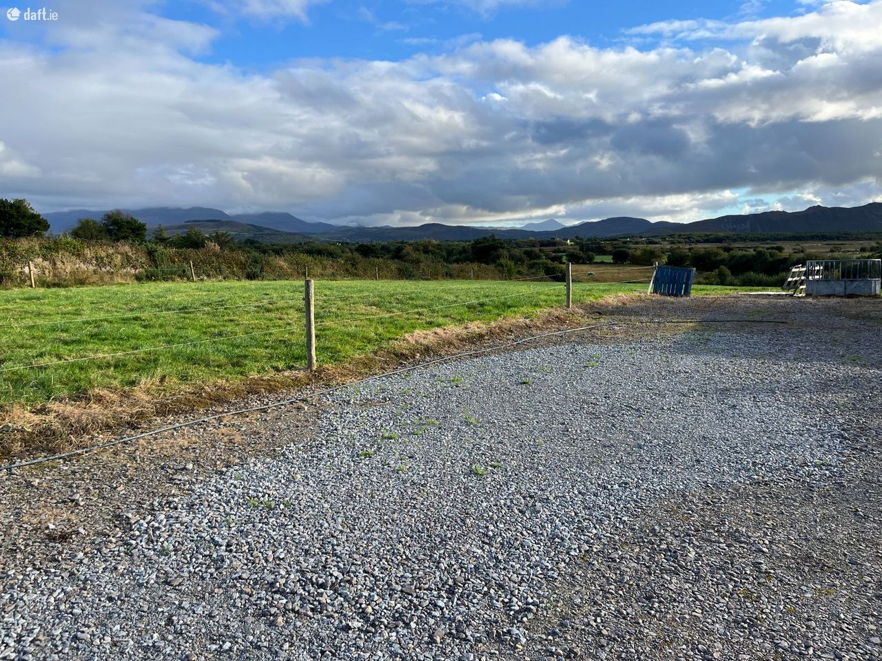 Excellent panoramic views from this 2 bed cottage which is in need of total renovation and decoration. The property measures 51 feet X 16 feet 4 inches (external area) and comes with a number of out buildings and sheds. The property is on circa 4 acres and is serviced by mains water and electricity. The property is approx 6.5 km from Killorglin Town, 5.5 km Cromane beach and 9.5 km Glenbeigh village. May qualify for vacant property refurbishment grant. Excellent potential here, so for further details and appointment to view call Adrian on 087 1303206.